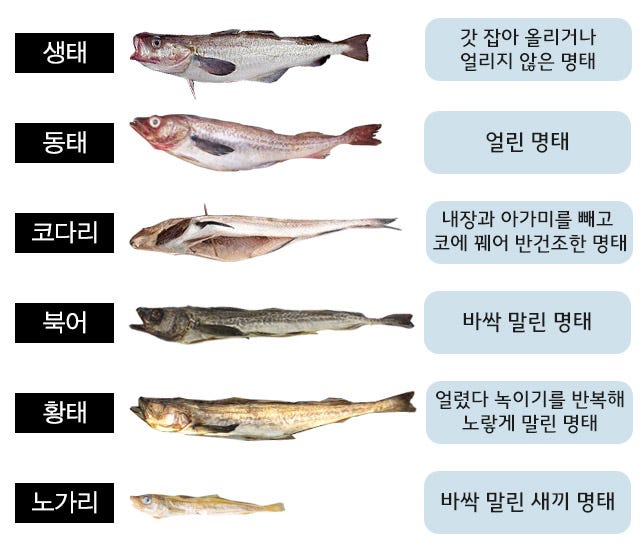 Pollock (명태) used to be (not anymore) the most abundant fish around Korean coast. This fish is known by so many different names that even Koreans, including myself, are confused by them—and most of these names have been in widespread use for a long time.
